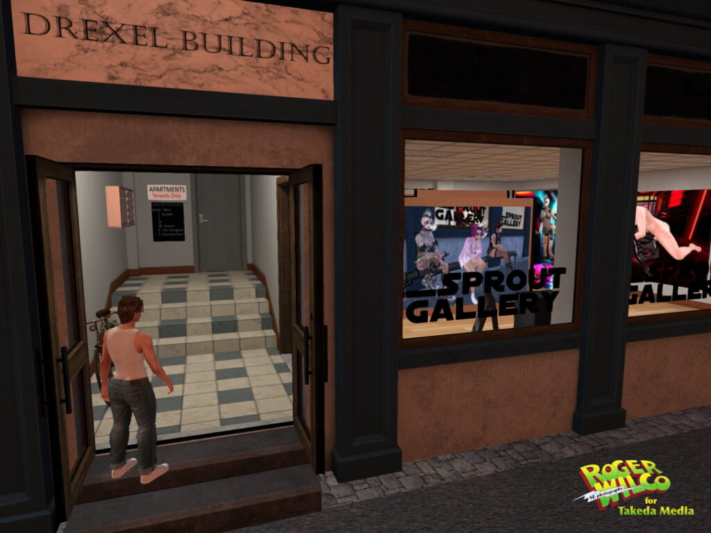 Welcome to the extraordinary and creative (and often really horny making 😉 ) art exhibitions here in SL. I’m Roger Wilco, a student of the fine arts at the “Aetherium Academy of Arts” in Celestia City. I’ve just started my new job at Takeda Media as a critic and columnist for the “SL Art” section (thank you so much and best regards to Caroline, Candy, and my Laura from Takeda Media).